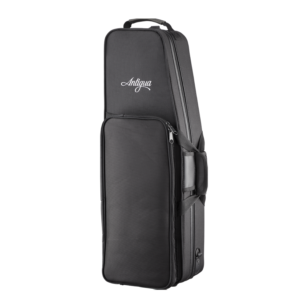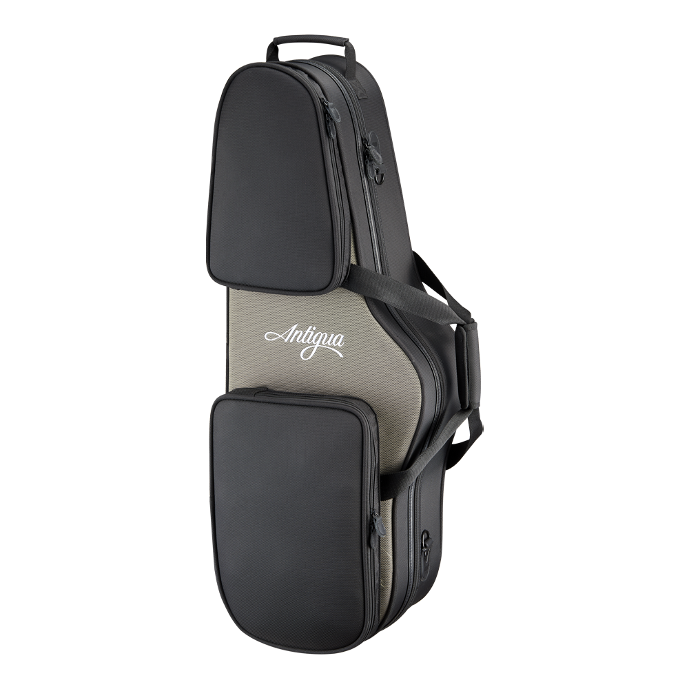 Our deluxe contoured backpack cases for alto & tenor saxophone are made using superior molded polyfoam for maximum protection, then covered with luxurious ballistic nylon. Large outside pockets provide plenty of room for accessories. In addition to the convenient backpack feature option, this can also be carried by its handle, or removeable shoulder strap option.